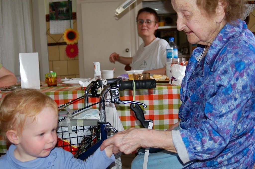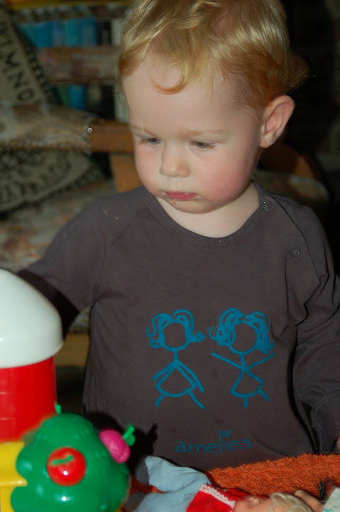 Er was vanalles om te eten en te drinken: kervelsoep, brood, gerookte zalm, perzik voor iedereen. En een speelhoek voor mij alleen al heb ik 'm gedeeld met Nonkel Phillippe, Moeke, Mama, Peter Berg, Nonkel Erwin, Tante Kristien, en Meter Heidi. Gelukkige verjaardag Meter Heidi en bedankt om zo uitvoerig te vieren met ons. Bedankt ook Peter Berg om opnieuw te vieren.